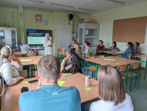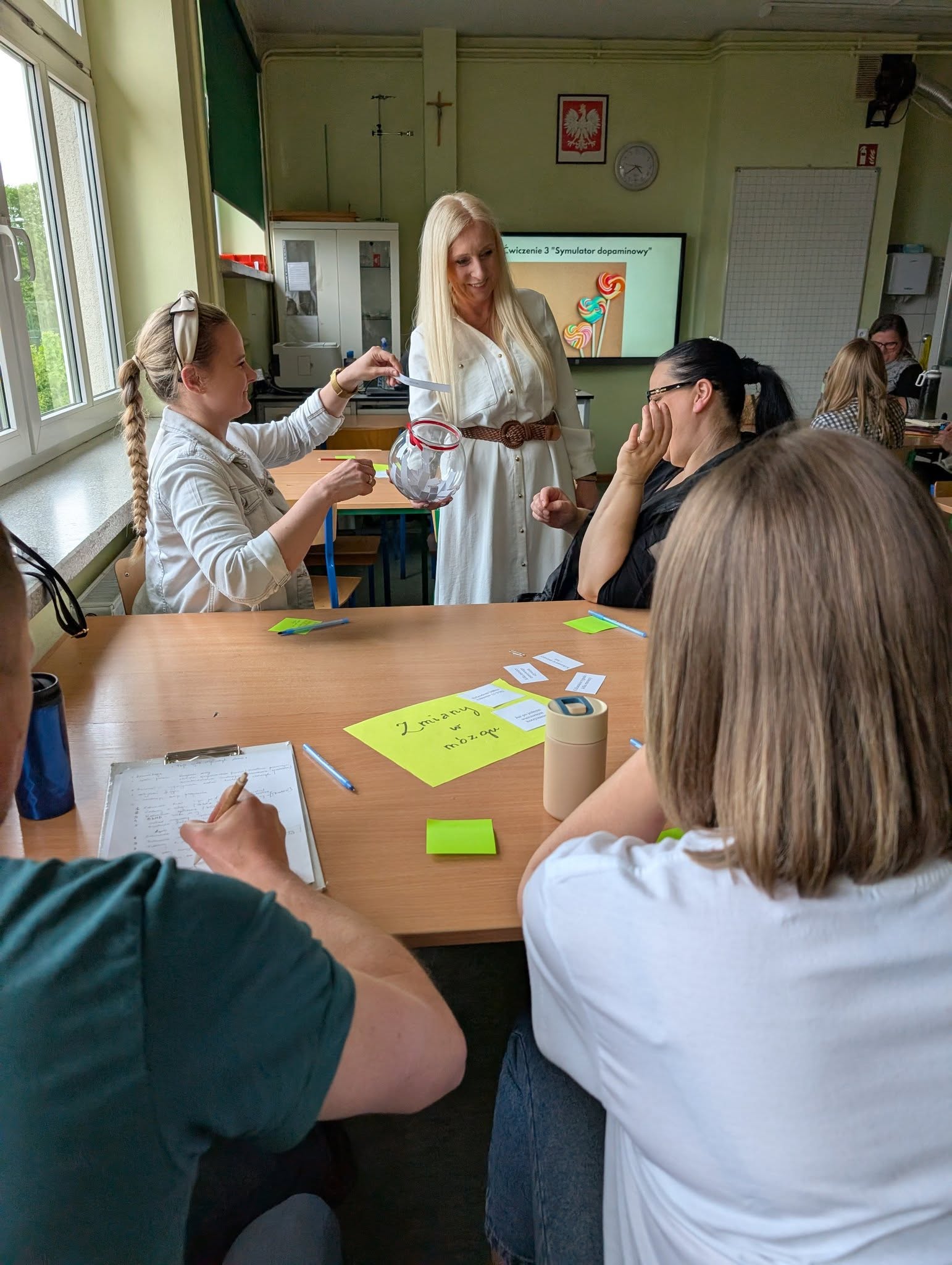 Na około godzinnym spotkaniu Pani psycholog Anna Parakiewicz omówiła fakty i mity na temat wpływu ekranów na mózg dziecka, rolę mediów społecznościowych i gier online. Jedno jest pewne nie uciekniemy od mediów dlatego warto mądrze wybierać treści i być świadomym zagrożeń. Uczestnicy warsztatów poznali mechanizm uzależnień cyfrowych i ich objawy. Omówiono co robić, gdy dziecko nie potrafi oderwać się od telefonu i jakie warto ustalić domowe zasady i granice cyfrowe nie tylko dla dzieci wspólnie zastanawialiśmy się jakie jak ustalać reguły i ich przestrzegać.