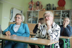Dzięki pomocy zatrudnionej w naszym przedszkolu Pani Svitlany goście mieli możliwość uzyskania rzetelnych informacji od osoby, która z doświadczenia zna systemy edukacji Ukrainy i Polski. Podczas spotkania nasza koleżanka nie szczędziła ciepłych słów na temat wsparcia okazanego przez mieszkańców Klebarka i Gminy Purda jej rodzinie oraz wszystkim uchodźcom po wybuchu wojny.