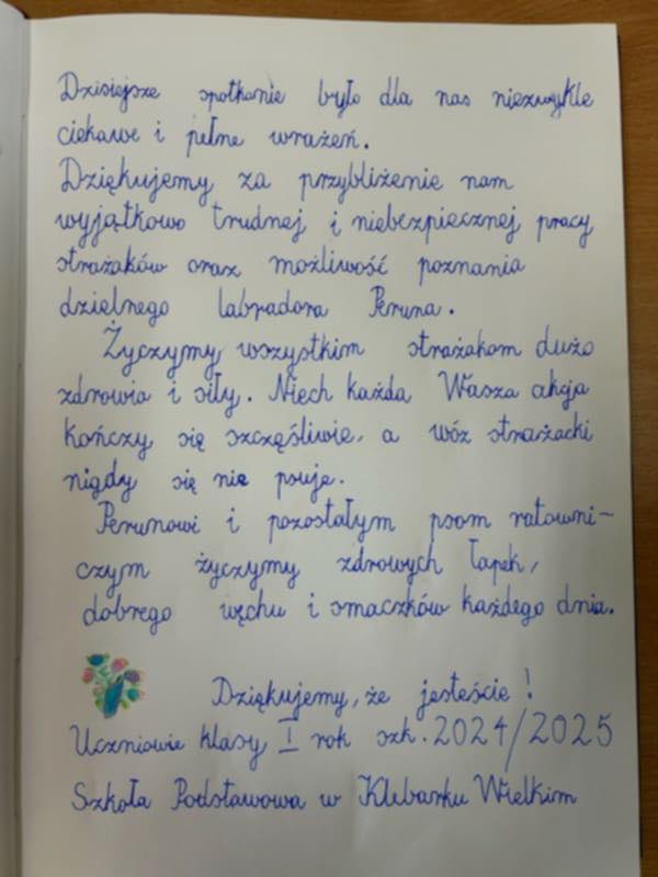 Jej ślad pozostanie nie tylko w pamięci uczniów, ale również w Księdze Podziękowań, do której wpisali swoje refleksje, życzenia i … ogromną wdzięczność za codzienną troskę o ludzi, ich domostwa i oczywiście piękną przyrodę.