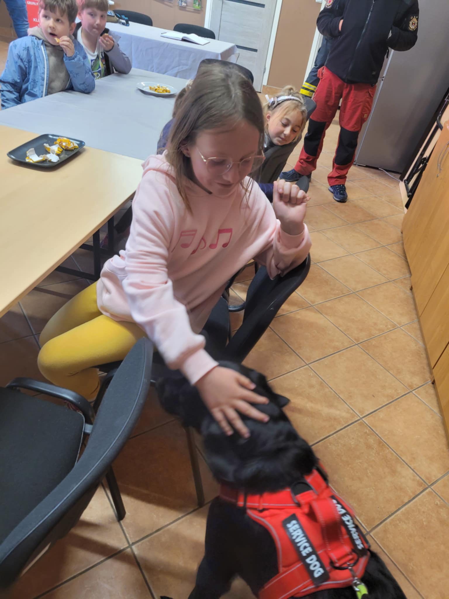 Wisienką na torcie było spotkanie z Perunem- aktualnie najmłodszym psem (jeszcze niebiorącym udziału w akcjach) lokalnej grupy ratowniczo – poszukiwawczej, który skradł serca uczniom.